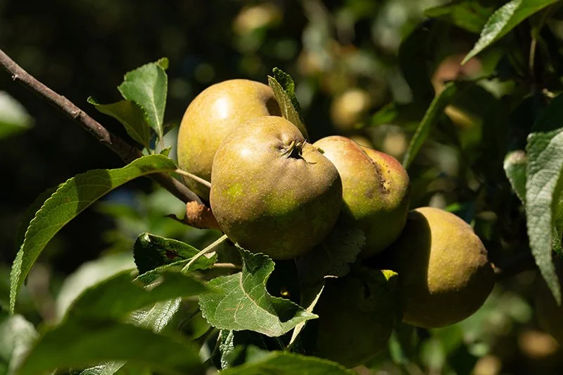 Our heritage farm includes orchards with traditional apple species such as DโArcy Spice, Golden Harvey, and Langley Pippin.